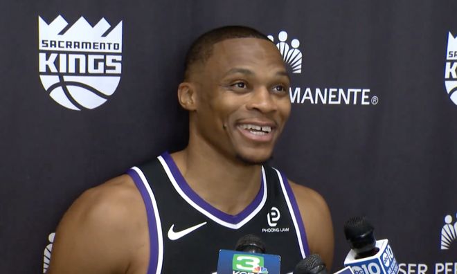 雷速体育10月20日讯 国王今日举行了新闻发布会,威少正式亮相并接受了记者们的采访。